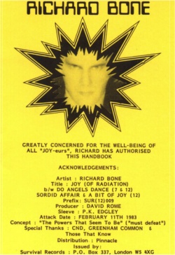 This mini-booklet was put together by Survival Records promoting "Joy of Radiation"
